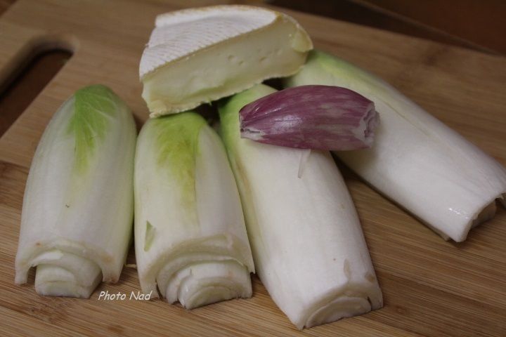 * Recette que j’ai inventée en regardant ce qu’il y avait dans mon frigo et… à refaire car le mariage endive-Reblochon est excellent !