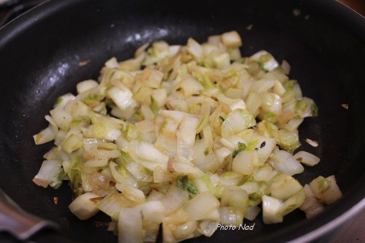 Ajouter l’échalote et les endives et faire cuire pendant 3 minutes en remuant régulièrement.